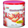Wafer renyah dengan krim rasa Strawberry dalam kemasan kaleng.